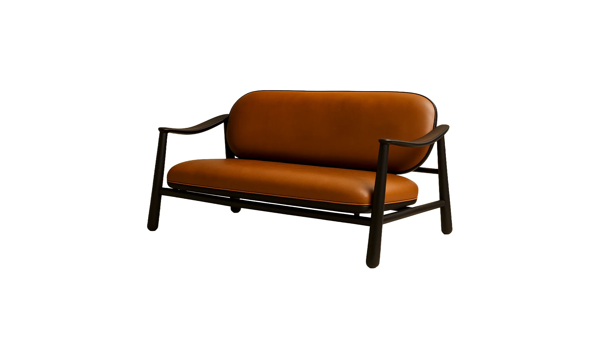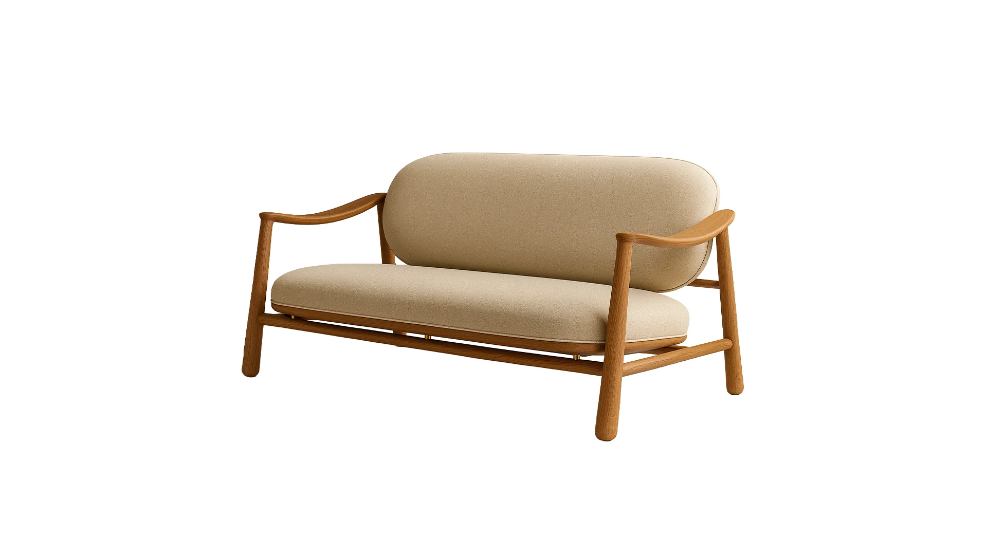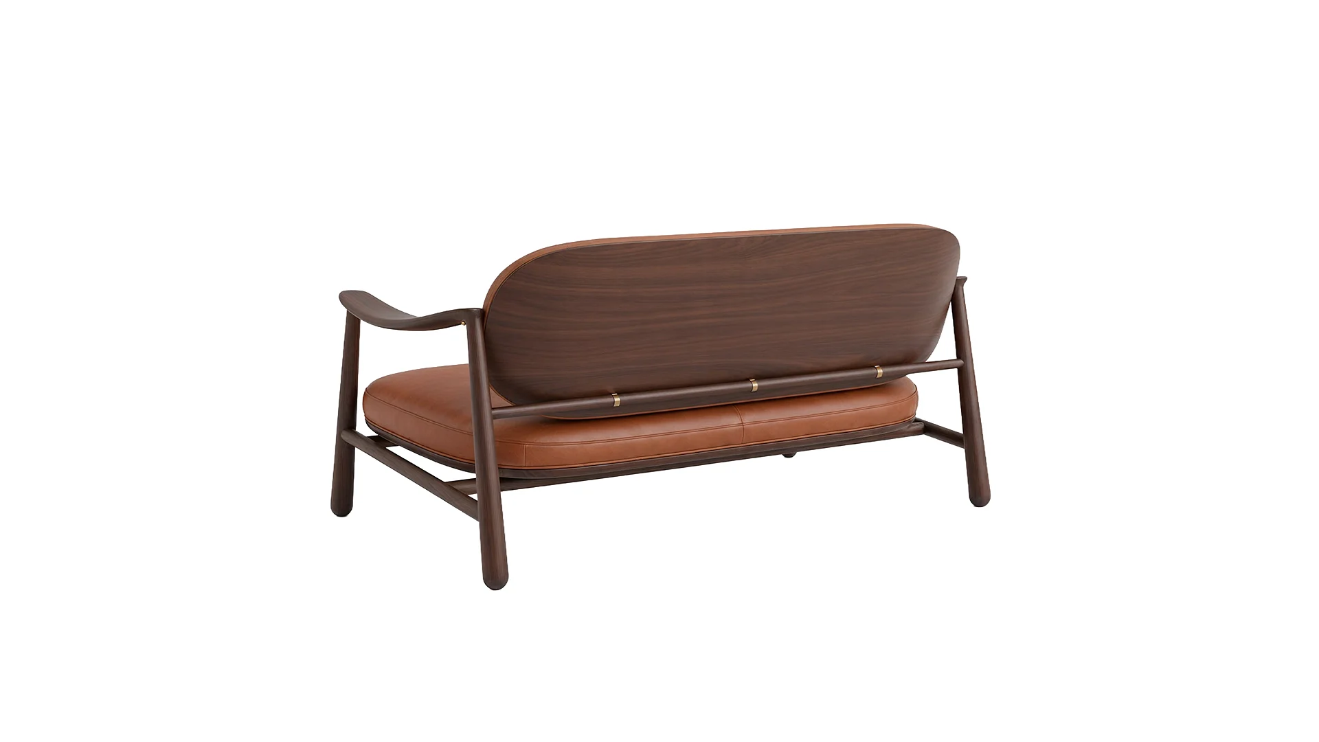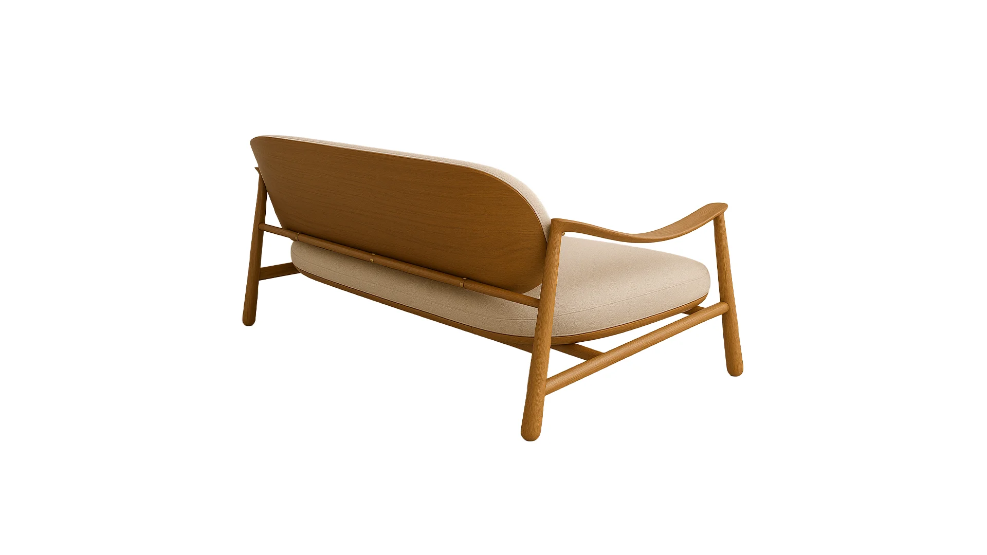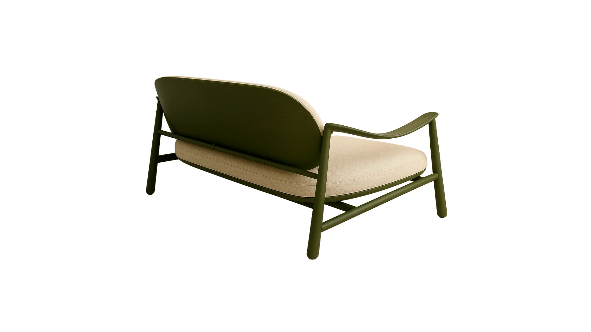 This outdoor sofa is expertly crafted from premium solid teak, chosen for its exceptional durability and natural resistance to the elements. Its softly curved frame and smooth, organic lines create a warm, inviting presence that blends seamlessly into any terrace, garden or poolside setting.
