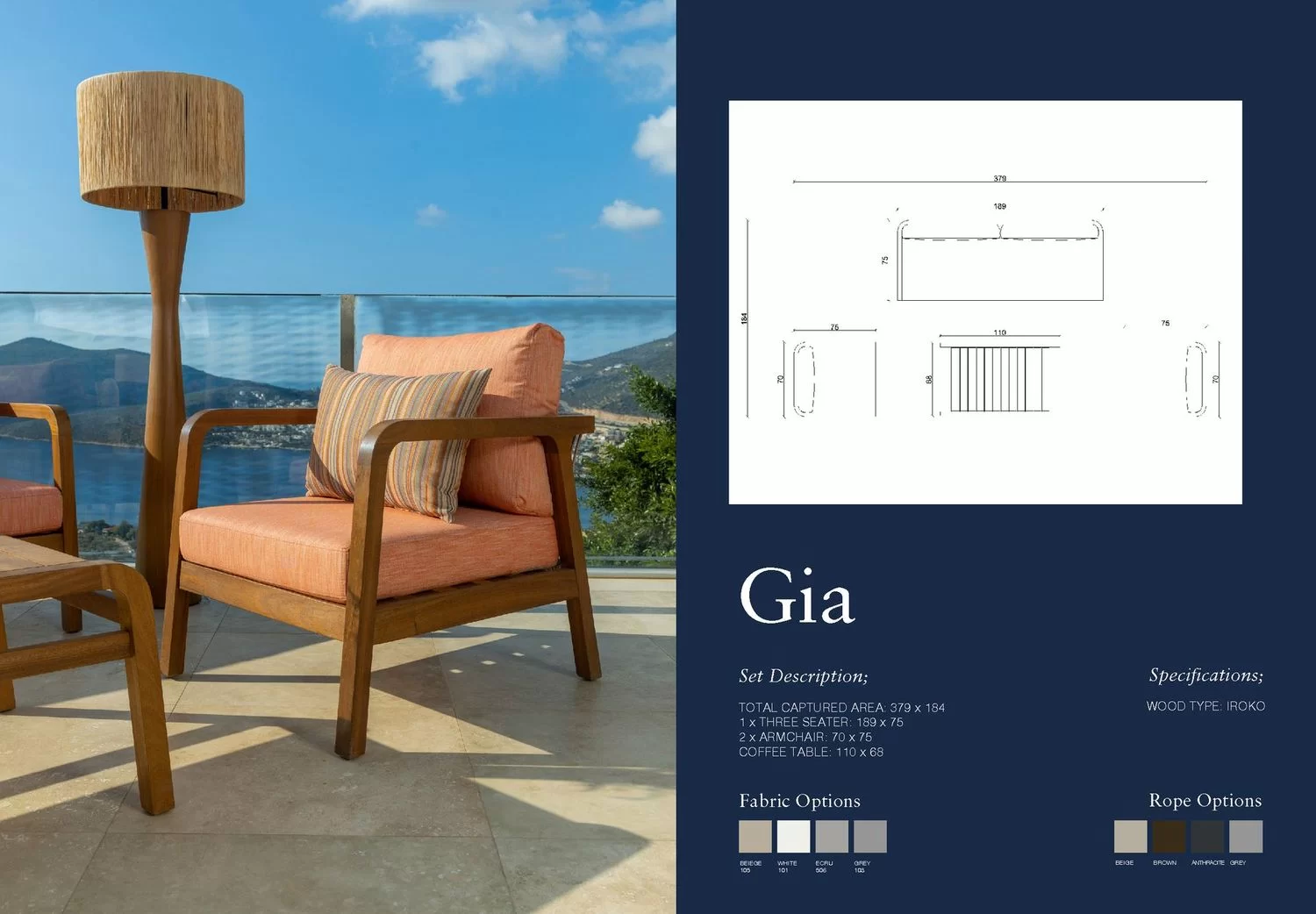 The Gia Outdoor Lounge Set is a stylish and inviting ensemble, perfect for elevating your outdoor living experience. Crafted from premium teak wood, the set includes a three-seater sofa, two armchairs, and a sleek coffee table, all designed with a balance of elegance and comfort. The chairs and sofa feature plush, weather-resistant cushions in a warm coral hue, adding a pop of color that complements natural surroundings. The armrests and frames showcase clean, curved lines that enhance the set’s modern aesthetic, while the woven rope details on the chairs add texture and visual interest. Ideal for patios, terraces, or poolside lounging, the Gia set provides a luxurious space for relaxation and entertaining.