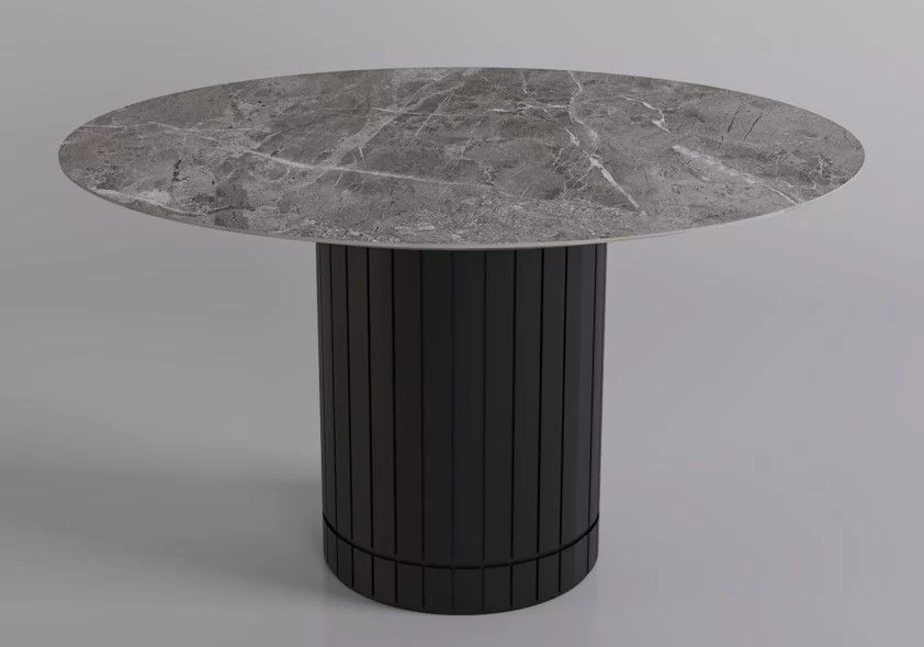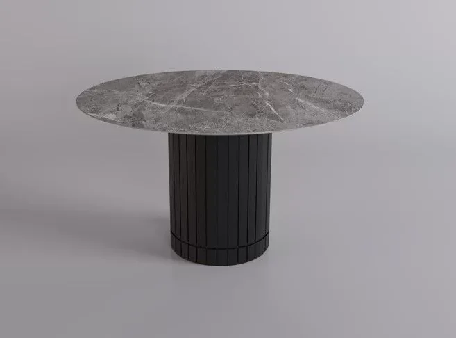 The Nero table, with its top that can be diversified with natural stones and its elegant wooden legs with fugue details, adds a stylish atmosphere to our dining areas.